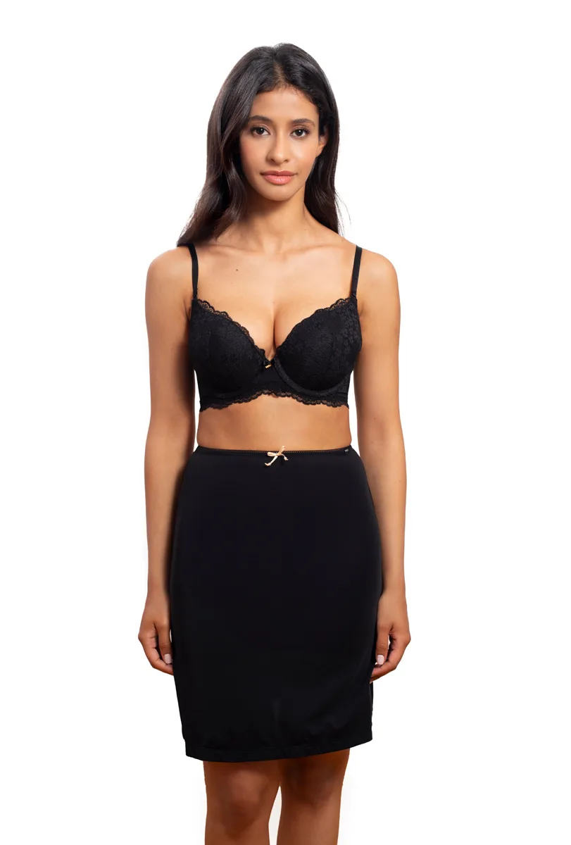 A classic, smooth half-slip that is perfect for skirts and dresses. The delicate and skin-friendly material remains invisible under clothes.