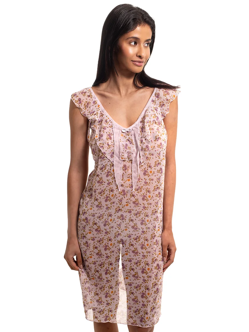 Women’s transparent nighdress made of pleasant and airy material decorated with a delicate floral pattern.