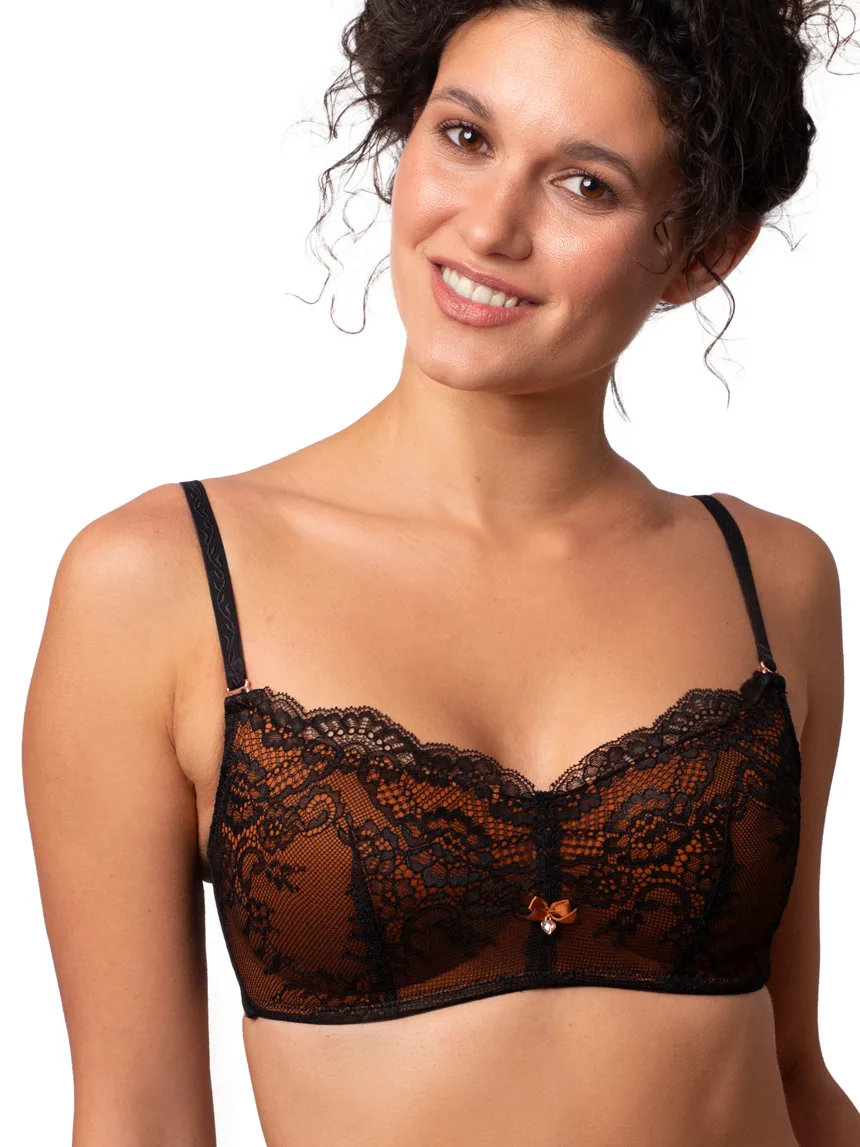 Jednoczęściowy biustonosz bezfiszbinowy koronkowy wykonany z innowacyjnej przewiewnej pianki. Miękka i ultrawygodna braletka podtrzymuje biust jednocześnie dając poczucie lekkości. Perforowana wewnętrzna strona miseczki zapewnia uczucie świeżości i komfortu. Bezfiszbinowy biustonosz koronkowy Bralette Top został stworzony z myślą o kobietach, które chcą wyglądać w bieliźnie elegancko jednocześnie nie rezygnując z wygody jaką zapewnia bielizna sportowa.